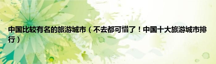大家好,综合小编来为大家讲解下。中国比较有名的旅游城市,不去都可惜了!中国十大旅游城市排行这个很多人还不知道,现在让我们一起来看看吧!