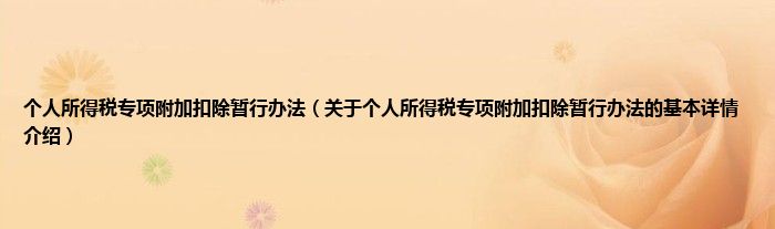 本文关于个人所得税专项附加扣除暂行办法的基本详情介绍就讲解完毕,希望对大家有所帮助。