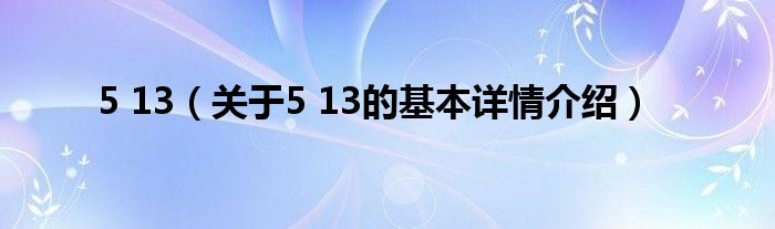 本文关于5 13的基本详情介绍就讲解完毕,希望对大家有所帮助。