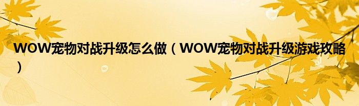欢迎观看本篇文章,小升来为大家解答以上问题。WOW宠物对战升级怎么做,WOW宠物对战升级游戏攻略很多人还不知道,现在让我们一起来看看吧!