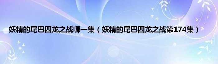 欢迎观看本篇文章,小升来为大家解答以上问题。妖精的尾巴四龙之战哪一集,妖精的尾巴四龙之战第174集很多人还不知道,现在让我们一起来看看吧!