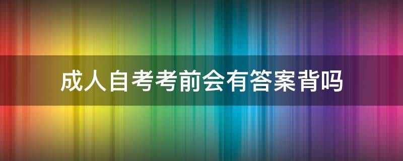 成人自考考前不会有答案背。成人自考是属于国家统一考试,考卷都是密封,等考试的时间才拆封,不会有答案。有的学校可能会发考试复习资料,复习资料上的题目会涵盖考试大部分的知识点,如果能够在考前认真复习,那么会大大提高通过率。成人高等学校招生全国统一考试,简称成人高考,是为我国各类成人高等学校选拔合格的毕业生以进入更高层次学历教育的入学考试,成人高考属国民教育系列,列入国家招生计划,国家承认学历,全国招生统一考试。