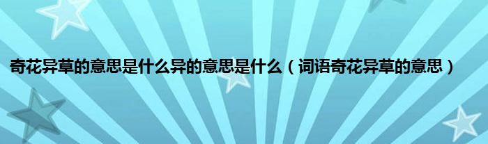 欢迎观看本篇文章,小升来为大家解答以上问题。奇花异草的意思是什么异的意思是什么,词语奇花异草的意思很多人还不知道,现在让我们一起来看看吧!