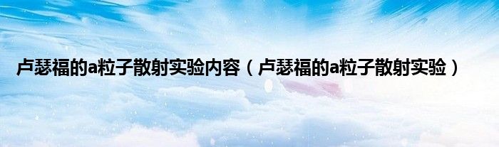 以上就是【卢瑟福的a粒子散射实验内容,卢瑟福的a粒子散射实验】相关内容。