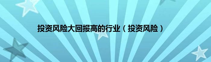大家好,小问来为大家解答以上问题。投资风险大回报高的行业,投资风险这个很多人还不知道,现在让我们一起来看看吧!
