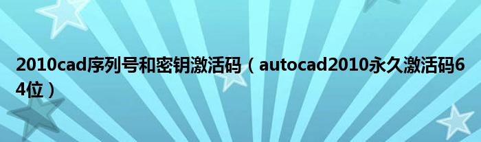 大家好,综合小编来为大家讲解下2010cad序列号和密钥激活码,autocad2010永久激活码64位这个很多人还不知道,现在让我们一起来看看吧!