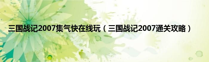 大家好,综合小编来为大家讲解下三国战记2007集气快在线玩,三国战记2007通关攻略这个很多人还不知道,现在让我们一起来看看吧!