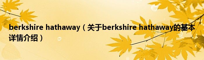 berkshire hathaway(关于berkshire hathaway的基本详情介绍)