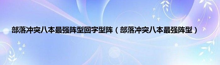 部落冲突八本最强阵型回字型阵(部落冲突八本最强阵型)