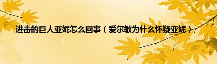 欢迎观看本篇文章,小升来为大家解答以上问题。进击的巨人亚妮怎么回事,爱尔敏为什么怀疑亚妮很多人还不知道,现在让我们一起来看看吧!
