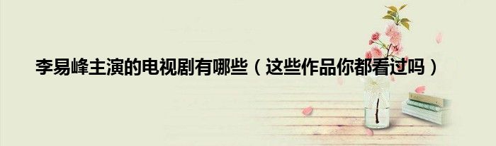 欢迎观看本篇文章,小升来为大家解答以上问题。李易峰主演的电视剧有哪些,这些作品你都看过吗很多人还不知道,现在让我们一起来看看吧!