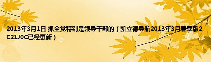 大家好,综合小编来为大家讲解下2013年3月1日 抓全党特别是领导干部的,凯立德导航2013年3月春季版2C21J0C已经更新这个很多人还不知道,现在让我们一起来看看吧!