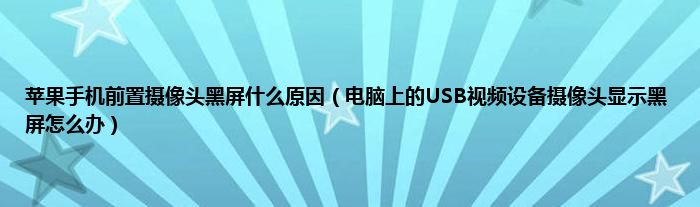 大家好,综合小编来为大家讲解下苹果手机前置摄像头黑屏什么原因,电脑上的USB视频设备摄像头显示黑屏怎么办这个很多人还不知道,现在让我们一起来看看吧!