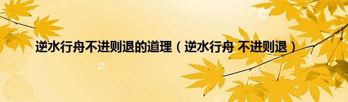 以上就是【逆水行舟不进则退的道理,逆水行舟 不进则退】相关内容。