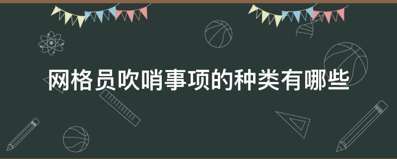 网格员吹哨事项的种类有快捷哨、攻坚哨、应急哨,网格员是社区网格员的简称,其指运用现代城市网络化管理技术,巡查、核实、上报、处置市政工程(公用)设施、市容环境、社会管理事务等方面的问题,并对相关信息进行采集、分析、处置的人员。城市网格化管理,是将城市管理辖区按照一定的标准划分成为单元网格。通过加强对单元网格的巡查,建立一种监督和处置互相分离的管理与服务模式。为了达到能够主动发现问题,及时处理问题,加强政府对城市的管理能力和处理速度,将问题解决在居民投诉之前。