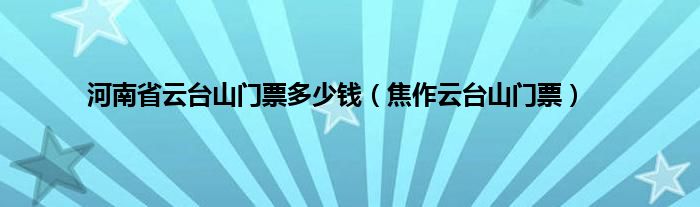 以上就是【河南省云台山门票多少钱,焦作云台山门票】相关内容。