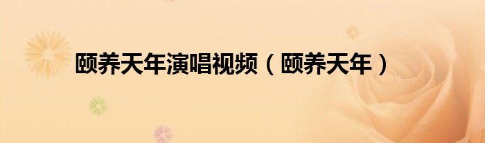 以上就是【颐养天年演唱视频,颐养天年】相关内容。