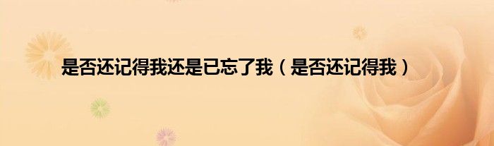 以上就是【是否还记得我还是已忘了我,是否还记得我】相关内容。