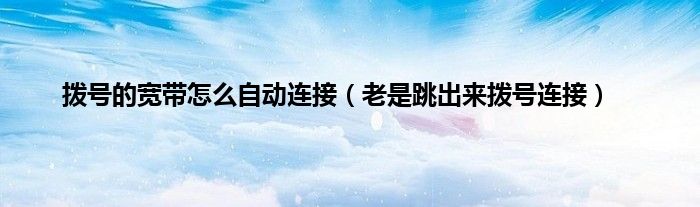 大家好,小问来为大家解答以上问题。拨号的宽带怎么自动连接,老是跳出来拨号连接这个很多人还不知道,现在让我们一起来看看吧!