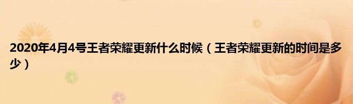 欢迎观看本篇文章,小升来为大家解答以上问题。2020年4月4号王者荣耀更新什么时候,王者荣耀更新的时间是多少很多人还不知道,现在让我们一起来看看吧!