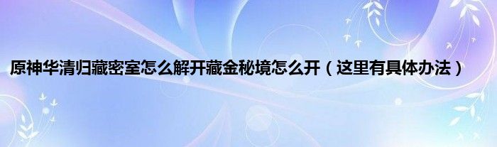 欢迎观看本篇文章,小升来为大家解答以上问题。原神华清归藏密室怎么解开藏金秘境怎么开,这里有具体办法很多人还不知道,现在让我们一起来看看吧!