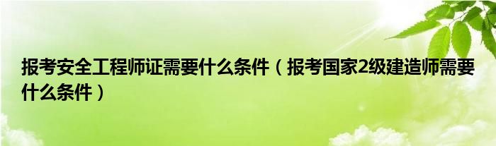 关于报考安全工程师证需要什么条件,报考国家2级建造师需要什么条件这个很多人还不知道,今天菲菲来为大家解答以上的问题,现在让我们一起来看看吧!