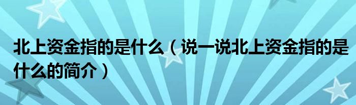 夏弥来为大家解答以下的问题,北上资金指的是什么,说一说北上资金指的是什么的简介,现在让我们一起来看看吧!