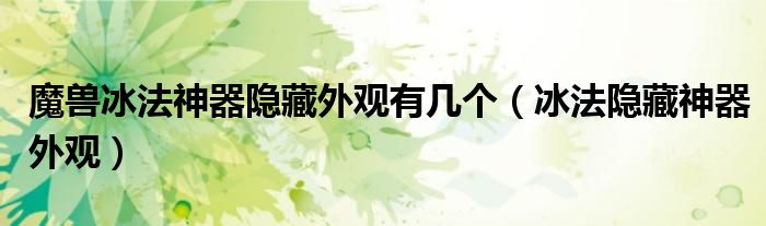 关于魔兽冰法神器隐藏外观有几个,冰法隐藏神器外观这个很多人还不知道,今天菲菲来为大家解答以上的问题,现在让我们一起来看看吧!
