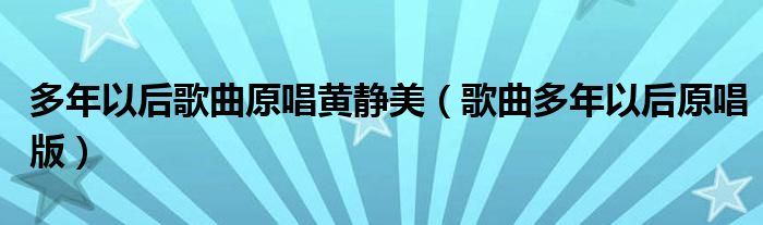 关于多年以后歌曲原唱黄静美,歌曲多年以后原唱版这个很多人还不知道,今天菲菲来为大家解答以上的问题,现在让我们一起来看看吧!