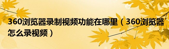 关于360浏览器录制视频功能在哪里,360浏览器怎么录视频这个很多人还不知道,今天菲菲来为大家解答以上的问题,现在让我们一起来看看吧!