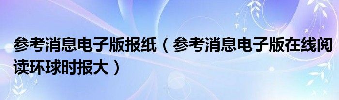 关于参考消息电子版报纸,参考消息电子版在线阅读环球时报大这个很多人还不知道,今天菲菲来为大家解答以上的问题,现在让我们一起来看看吧!