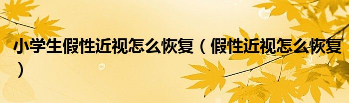 大家好,乐天来为大家解答以下的问题,小学生假性近视怎么恢复,假性近视怎么恢复很多人还不知道,现在让我们一起来看看吧!
