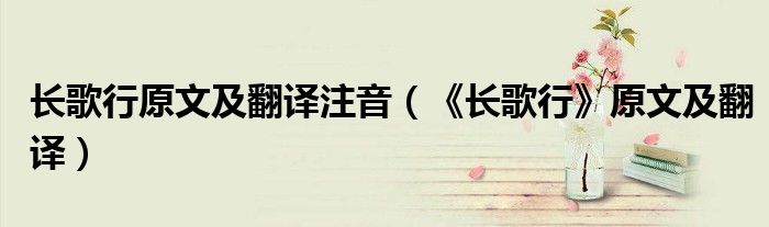 大家好,乐儿来为大家解答以下问题,长歌行原文及翻译注音,《长歌行》原文及翻译很多人还不知道,现在让我们一起来看看吧!