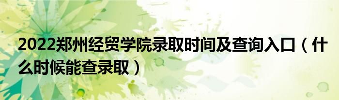 大家好,乐儿来为大家解答以下问题,2022郑州经贸学院录取时间及查询入口,什么时候能查录取很多人还不知道,现在让我们一起来看看吧!