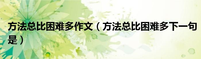 关于方法总比困难多作文,方法总比困难多下一句是这个很多人还不知道,今天菲菲来为大家解答以上的问题,现在让我们一起来看看吧!