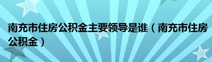 关于南充市住房公积金主要领导是谁,南充市住房公积金这个很多人还不知道,今天菲菲来为大家解答以上的问题,现在让我们一起来看看吧!