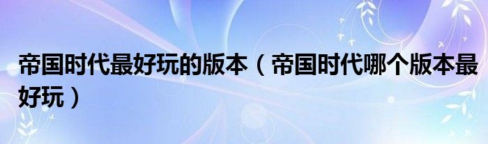 帝国时代最好玩的版本(帝国时代哪个版本最好玩)