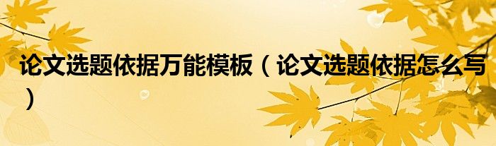 关于论文选题依据万能模板,论文选题依据怎么写这个很多人还不知道,今天菲菲来为大家解答以上的问题,现在让我们一起来看看吧!