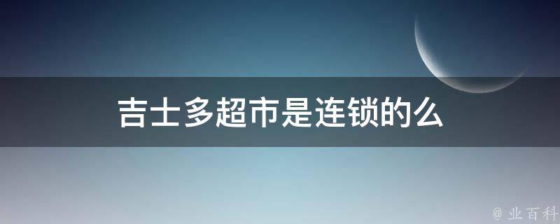 吉士多超市是连锁的。它由日本的AEON集团运营,该集团在全球范围内拥有多个连锁超市品牌,其中包括吉士多超市。吉士多超市在一些亚洲国家,如日本、中国、马来西亚等地方经营多家分店,提供各种日常生活用品和食品等商品。