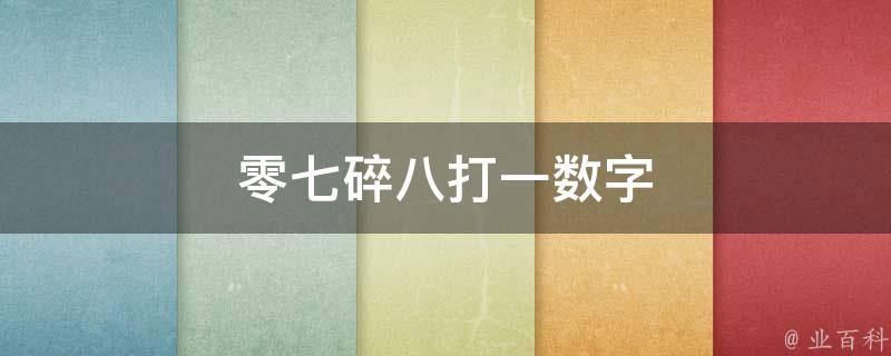 最佳答案零七碎八是数字30,可以从零七碎八的笔画入手去猜一数字。零字13笔画、七字2笔画、碎字13笔画、八字2笔画,4个字一共是13+2+13+2=30笔。因此零七碎八打一数字是30。零七碎八意思指零零碎碎的东西。出自路遥《平凡的世界》第二卷第30章:两个新人的衣服被褥和零七碎八下来,三五十块钱根本不顶事。