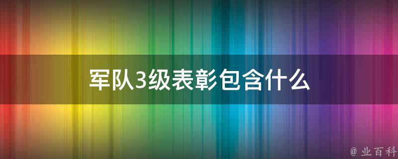 4、津贴:军队会为获得3级表彰的军人提供一定的额外津贴或补贴,作为对其贡献的经济回报。