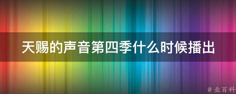 天赐的声音第四季什么时候播出