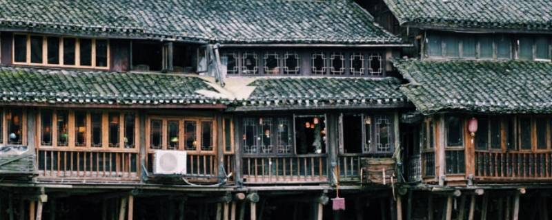 吊脚楼连接房屋框架用的是榫卯结构。吊脚楼框架用榫卯连接,不用一钉一铆,依山势建造而成,建筑风格别具特色,形成了独特的苗寨吊脚楼景观。榫卯结构根据不同类型可以划分成数百种,其应用领域也非常广泛,有建筑、家具、玩具等。