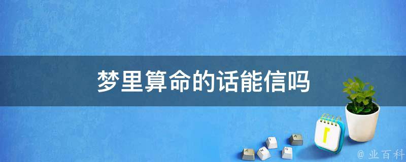 梦里算命的话不能信。因为梦境是人类意识的一种状态,通常是在身体休息时,大脑处于不同状态下的表现。梦境跟现实生活是分离的,梦境中的符号、形象和场景等元素,不一定具有明确的预知能力或符号意义,梦境中的所谓算命也无法确定其准确性或可行性。
