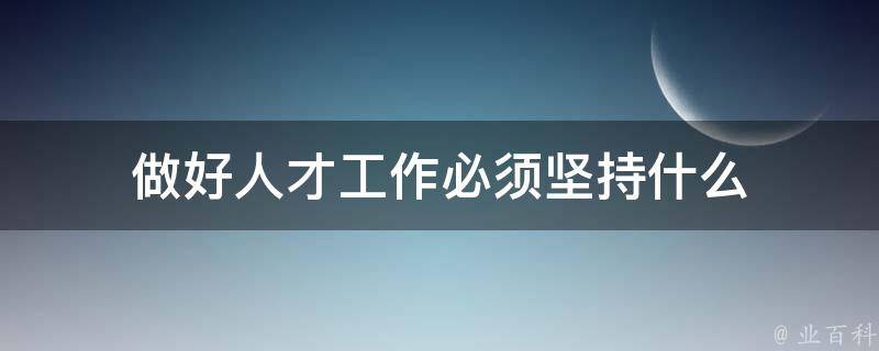 1、坚持人才优先:人才是创新发展的重要资源,做好人才工作必须把人才放在第一位,注重人才培养、选拔和使用,为各行各业提供优秀的人才支持。