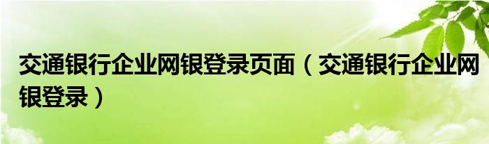 大家好,小联来为大家解答以上的问题。交通银行企业网银登录页面,交通银行企业网银登录这个很多人还不知道,现在让我们一起来看看吧!