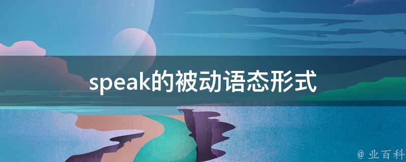 speak的被动语态形式是:be spoken,意思是说话。被动语态是动词的一种形式,用以说明主语与谓语动词之间的关系。英语的语态共有两种:主动语态和被动语态。被动语态由be动词+及物动词的过去分词构成。