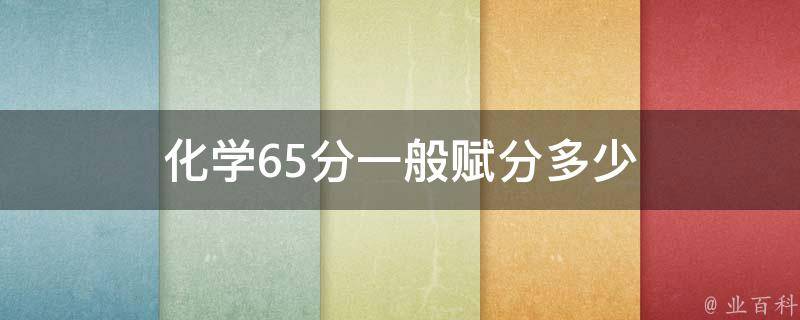 化学65分一般赋分为7.5分。化学的赋分系数为1.5,因此化学65分的赋分为(65-60)×1.5=7.5分。赋分=(考试分数-60)×系数,其中,考试分数为该科目的实际得分,60为该科目的满分,系数为赋分系数,不同的科目有不同的赋分系数。