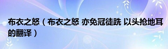 关于布衣之怒,布衣之怒 亦免冠徒跣 以头抢地耳的翻译这个很多人还不知道,今天菲菲来为大家解答以上的问题,现在让我们一起来看看吧!