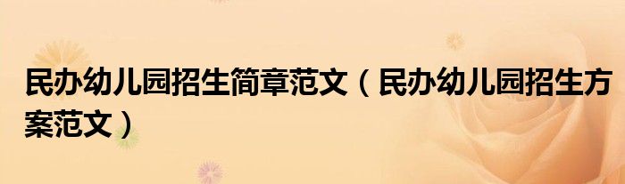 关于民办幼儿园招生简章范文,民办幼儿园招生方案范文这个很多人还不知道,今天菲菲来为大家解答以上的问题,现在让我们一起来看看吧!